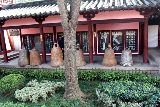 敲三下五元。这是寒山寺钟楼前的明码标价。心里虽然觉得怪怪的,但是到了寒山寺,谁不想亲眼目睹催生了《枫桥夜泊》的这口闻名海内外的大钟呢?何况还能亲手敲钟。
