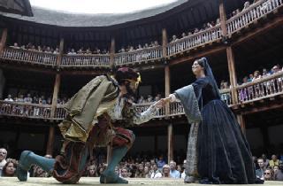 穿过泰晤士河上最古老的伦敦桥,就来到了泰晤士河的南岸。拐过几条小巷子,一座勾勒着褐色木线条的白色“谷仓”式圆形建筑出现在我们面前。这就是环球剧院。