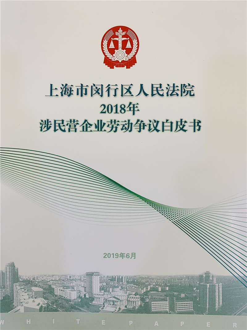 为进一步提供更有力的司法保障和优质司法服务,优化营商环境,上海闵行法院将职能延伸至本区“经济活力担当”——民营企业。《上海市闵行区人民法院2018年涉民营企业劳动争议白皮书》于6月25日发布,这是本市法院首次针对民营企业发布专项劳动争议白皮书,以期为民企劳资纠纷提供指引和参考,提高企业依法用工、劳动者依法维权水平。