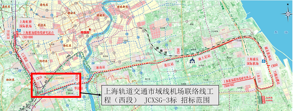 机场联络线是上海轨道交通的重要组成部分,可提升浦东机场、虹桥机场枢纽的服务能力,同时又能增进浦东机场对长三角区域的辐射和服务功能。上海轨道交通市域线机场联络线工程起于虹桥机场站,经七宝站、华泾站、三林南站、张江站、度假区站、浦东机场站、规划T3航站楼站,止于浦东新区上海东站。全线长68.6公里,其中地下段总长56.7公里(含盾构区间49.7公里),桥梁段总长8公里,路基段总长3.9公里。