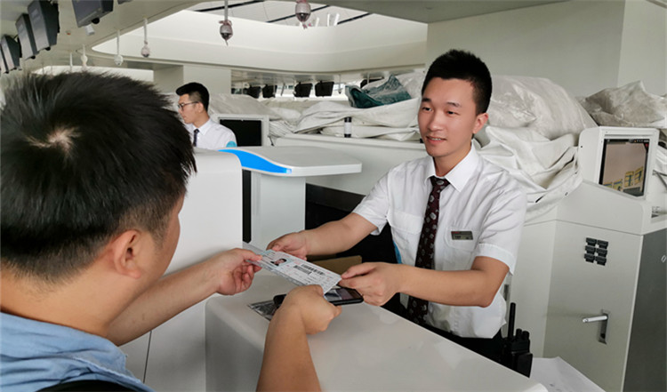 参加首次专项演练的地服员张琦面带微笑,欢迎“旅客”王先生前来柜台办理值机手续。王先生有一件超大行李需要托运,工作人员为其正常办理值机手续后,带领王先生至超大行李托运柜台完成了托运手续。