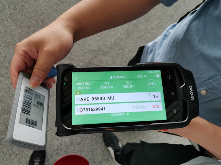 此次专项演练的另一大亮点是,东航“永久电子行李牌”首次内测,标志着东航成为国内首家推出永久电子行李牌的航空公司,助力北京大兴国际机场打造成为绿色机场、智慧机场。