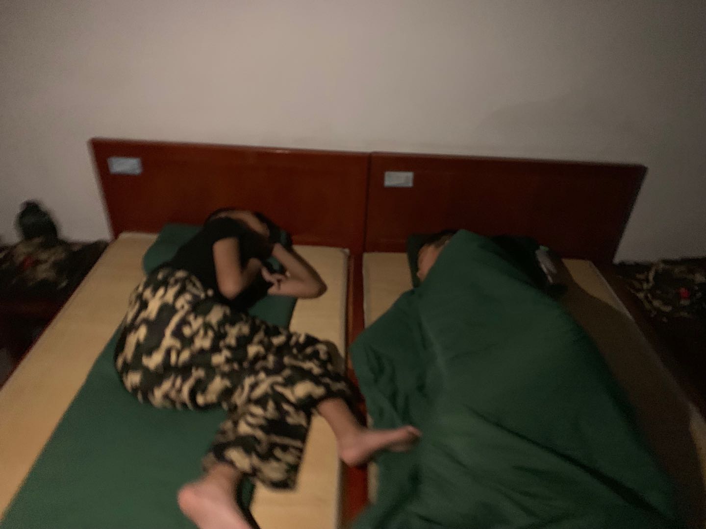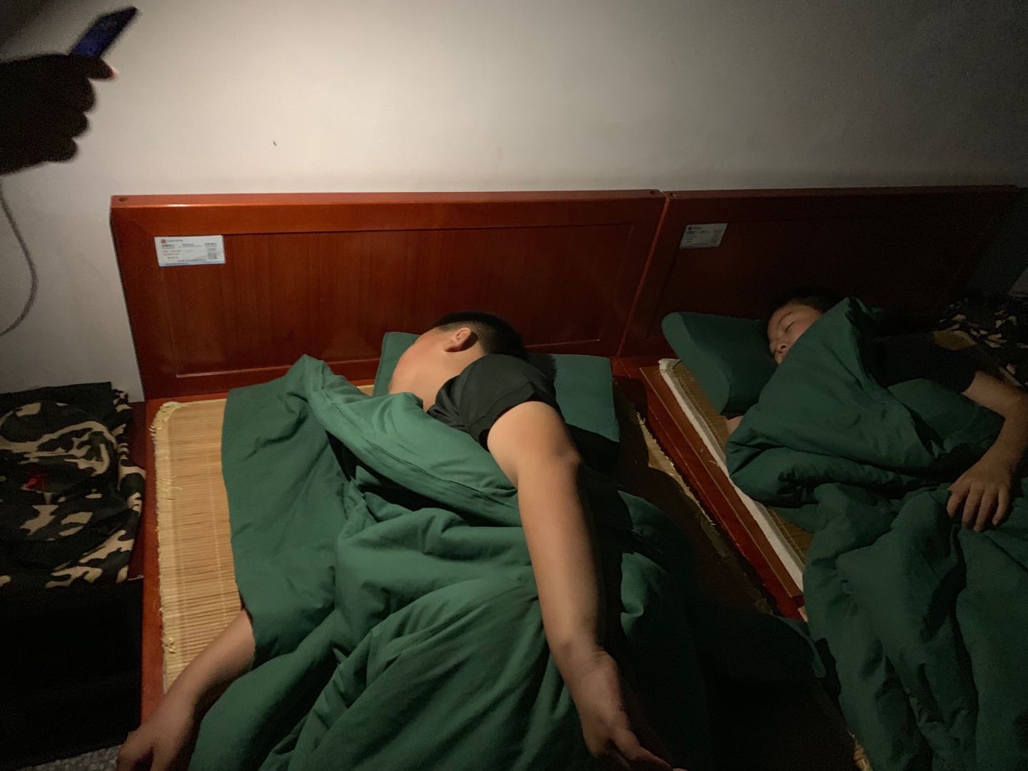 经过了一天的舟车劳顿,在教官们“熄灯”的命令下,洗漱完毕的“小战士”们,逐渐进入了梦乡。