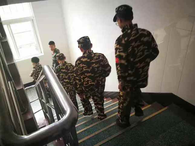 一声哨响:全体下楼集合!小战士们在教官的带领下,迅速排列整齐,有序下楼集合。