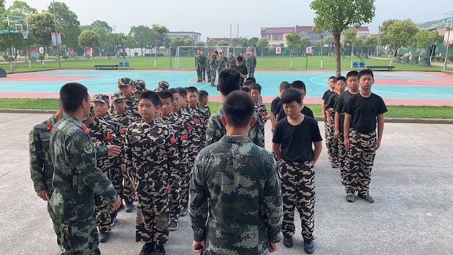 新的一天,天清气爽,阳光温柔地攀上小战士们挺直的脊背。清晨是夏日难得的凉爽时段,小战士们全部精神饱满,立正站直,仔细聆听教官训话,等待下一步指示。