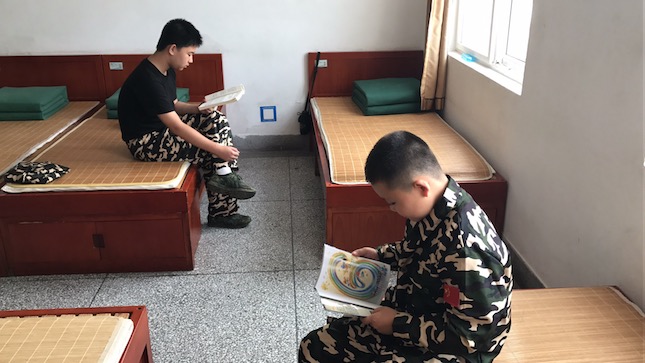 学习和完成了内务整理后,小战士们迎来了难得的悠闲时光。捧着翻着或自己带来的、或在阅览室借来的图书,小战士们认真而投入地阅读起来。