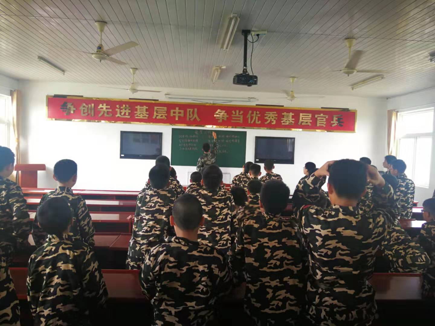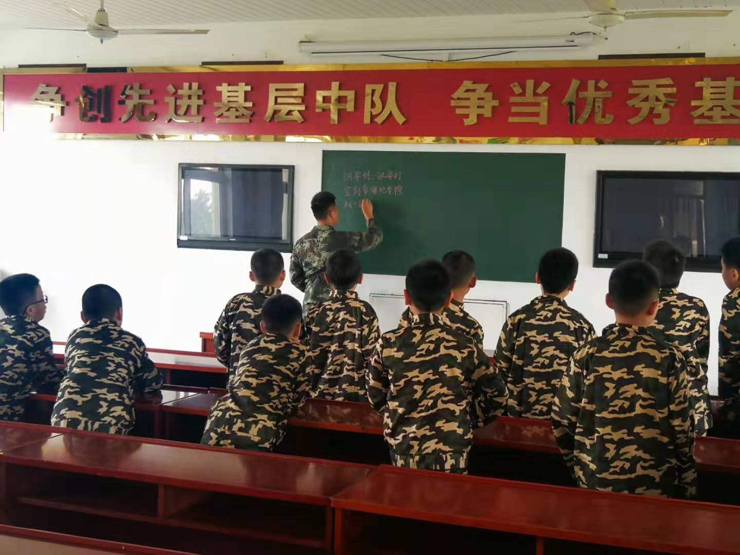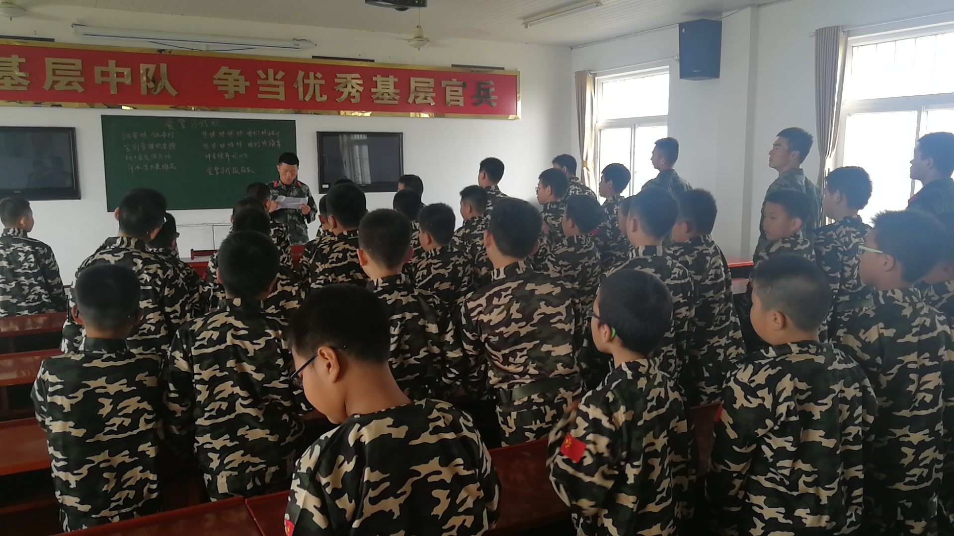 在教官的带领下,小战士们有序进入教室。将今天教学内容准备在黑板上的教官带着他们简单列队之后,就开始了警歌的教学。