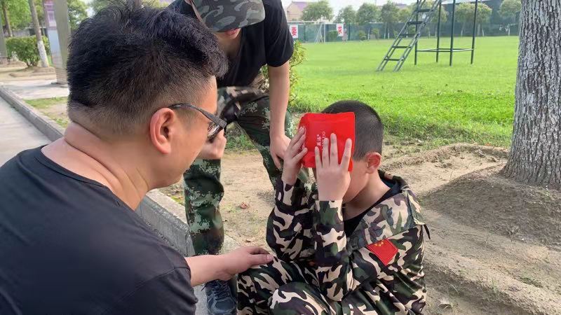 现场,在教官及陪伴老师的帮助下,暂时“心有余而力不足”的孩子们,通过敷冰袋、调整呼吸、喝盐汽水、擦风油精等,逐渐恢复了状态。