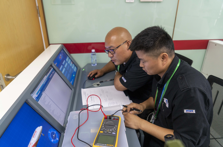 新机型新技术维修技能比武大赛以“以智慧塑造民航业的全新未来”为主题,弘扬和践行当代民航精神、工匠精神,推进维修理念和技术不断升级,打造高素质高技能的民航机务维修人才队伍,从复合材料无损检测、光纤线路检查和模拟故障排除等三方面,考察各维修单位对新机型、新技术的掌握运用能力。