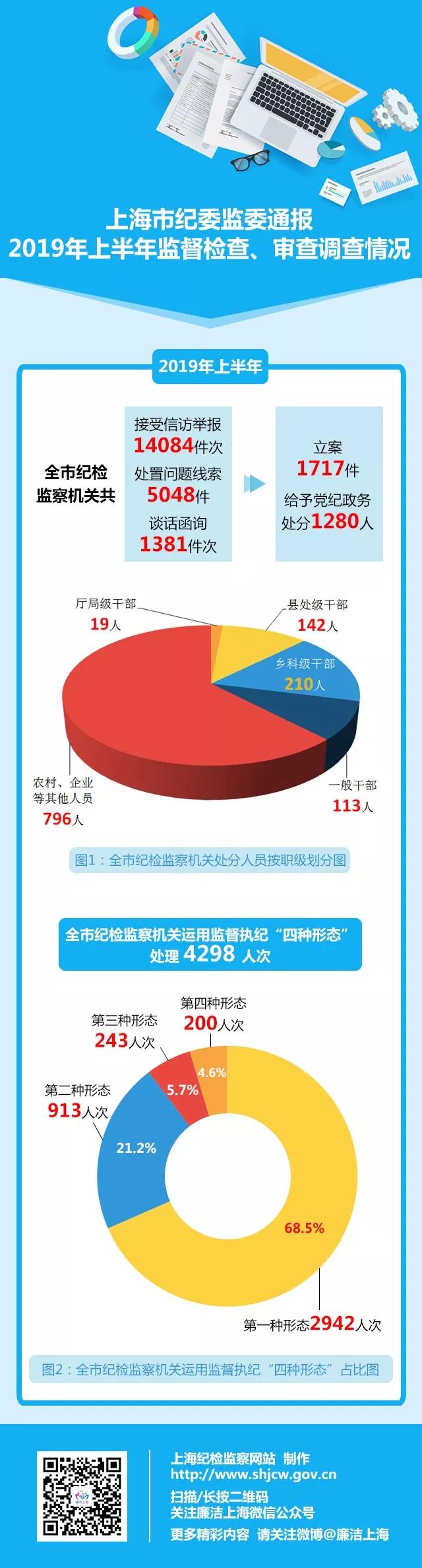 据@廉洁上海 消息,上海市纪委监委通报了2019年上半年监督检查、审查调查情况。