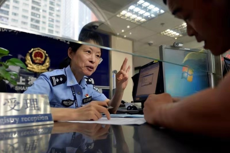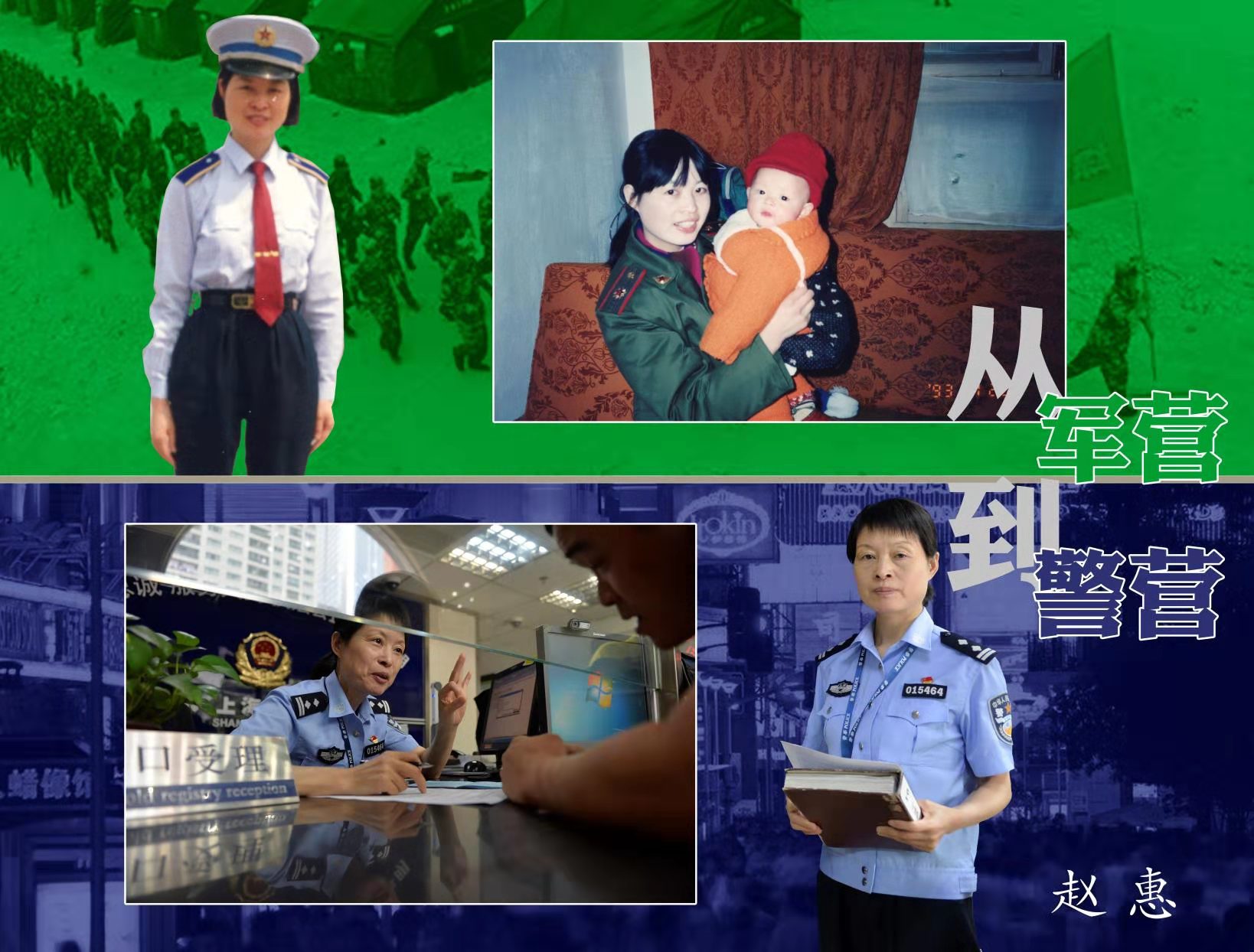 没错,她就是一个不爱红装爱武装的女子。作为一名曾经的空军地空导弹部队干事,赵惠在部队转业以后没有选择去相对安稳的事业机关,而是来到了同样需要身着制服,守护百姓平安的公安队伍。2006年,赵惠加入“黄浦公安”这个大家庭后,先后经历了看守所监管、派出所治安管理等岗位的锻炼,2009年她主动请缨挑起了南京东路派出所户籍窗口岗位的重担,这样一干,就是整整十年。