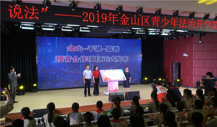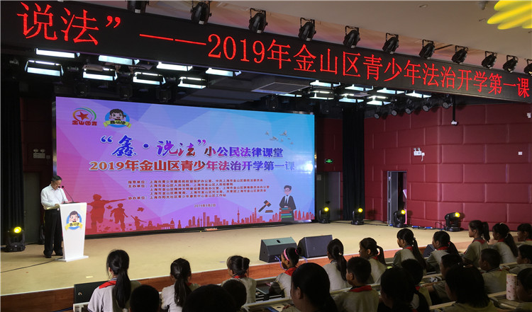 400余名金山区的青少年代表,今天下午现场参加了“鑫·说法”小公民法律课堂——2019年金山区青少年法治开学第一课活动,全区中小学生及家长则通过视频直播观看课堂内容。