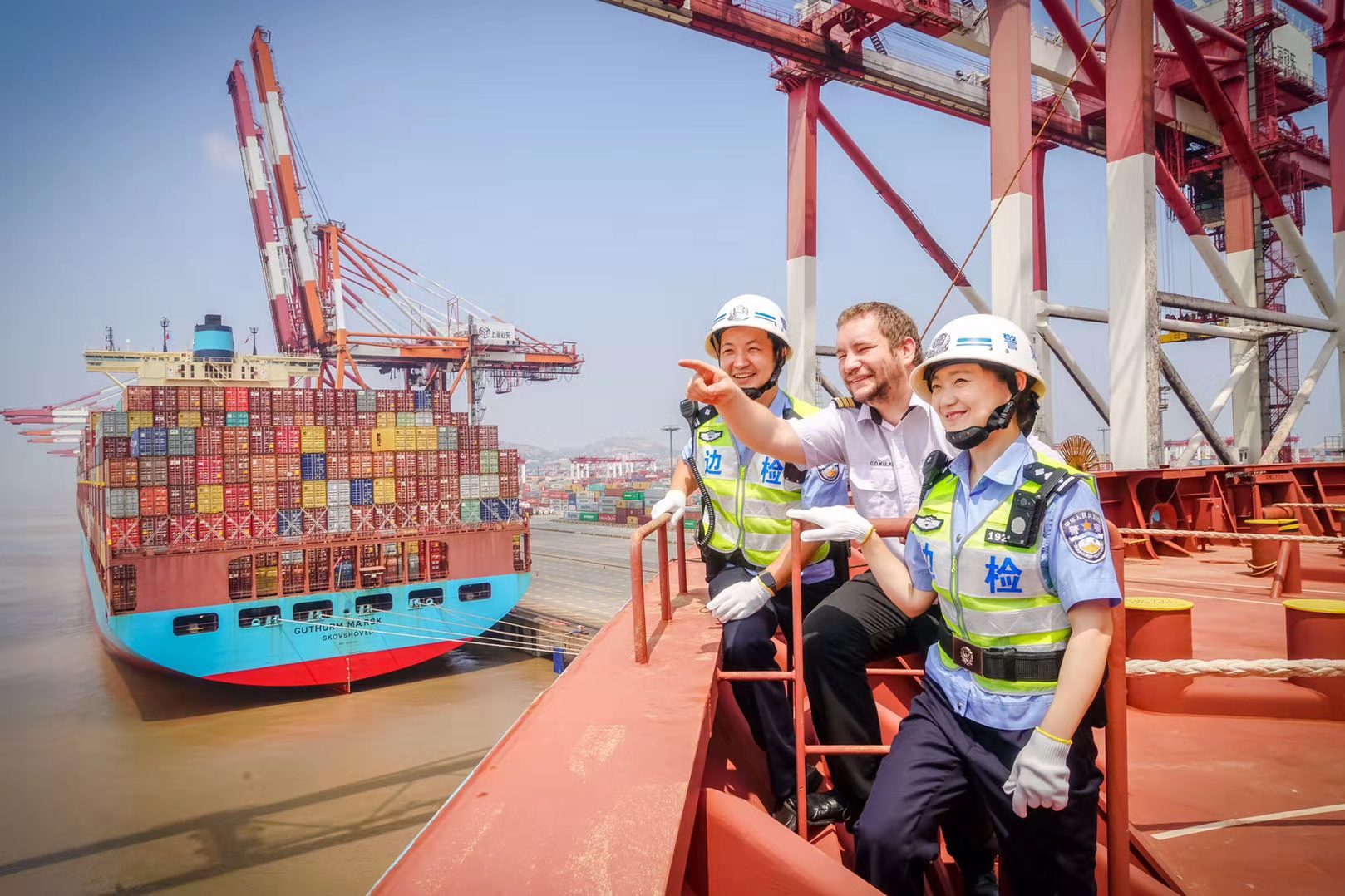 在推进联合登临检查机制方面,自2017年起,洋山边检站累计联合口岸单位,通过“协同办”开展联合登临200余次。今年联合登临数据尤为亮眼,2019年累计开展了90余次联合登临,尤其是8月中国(上海)自贸试验区临港新片区成立后,联合登临的次数占到了今年的5成以上,口岸查验单位一次登轮检查,完成全部查验手续仅需20多分钟,提升了洋山口岸的查验能力和服务水平,有效地保障了第二届进博会展品快速入境布展。