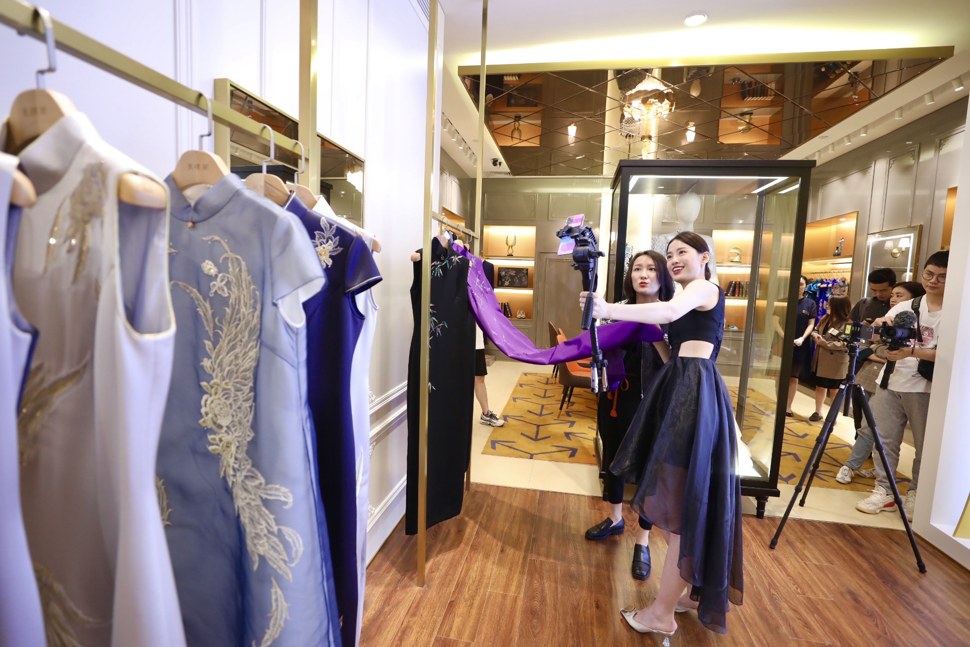 “上海五五购物节品质生活直播周”启动活动刚结束,小红书博主陈逸慧就已准备就绪,她所处的位置是长乐路400号的蔓楼兰旗袍体验馆,为大家带来一场优雅的体验。