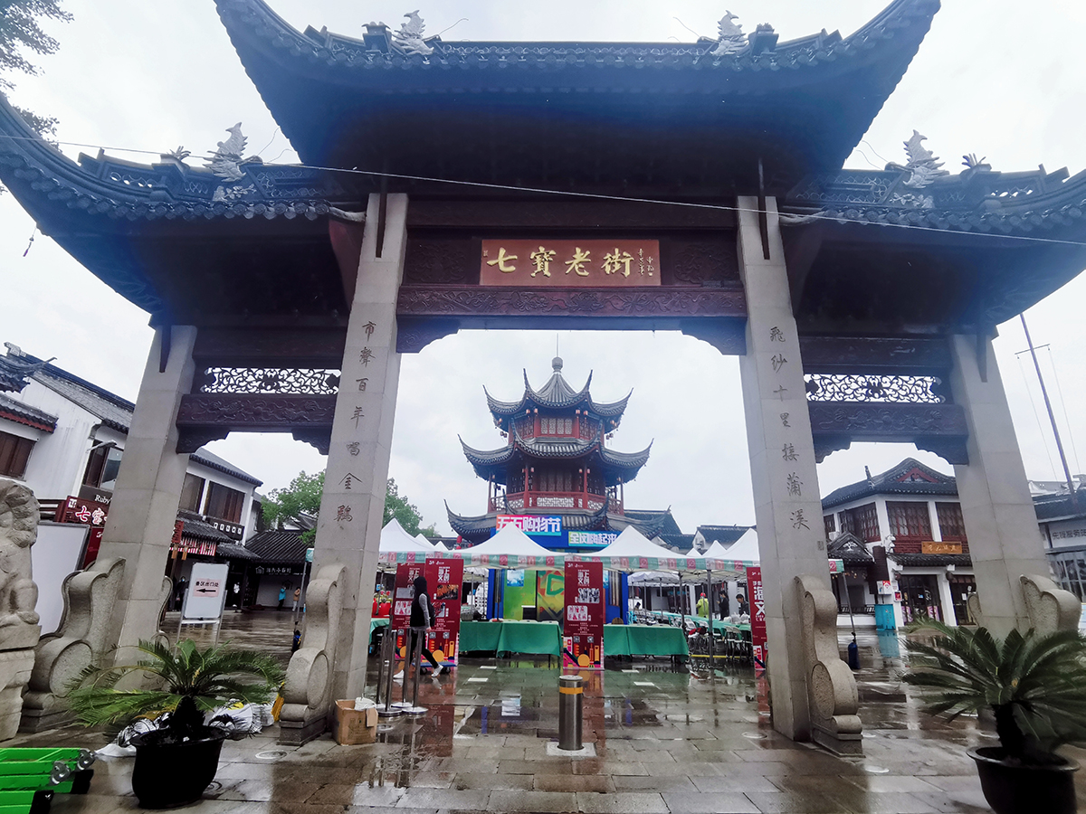 今天一整天的直播正进入下半程,下午2点“五五购物节·品质生活直播周”来到七宝古镇的非遗手作集市。