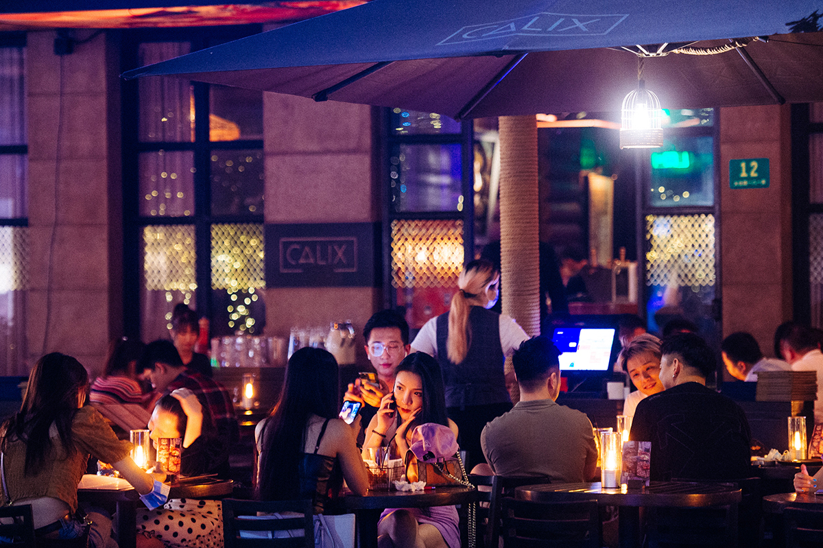 上海新天地的露天餐馆几乎座无虚席