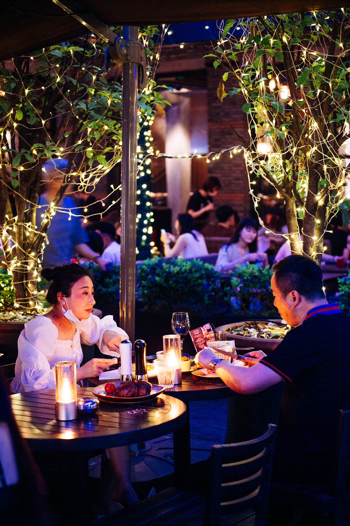 人们畅快地享受着美食美酒