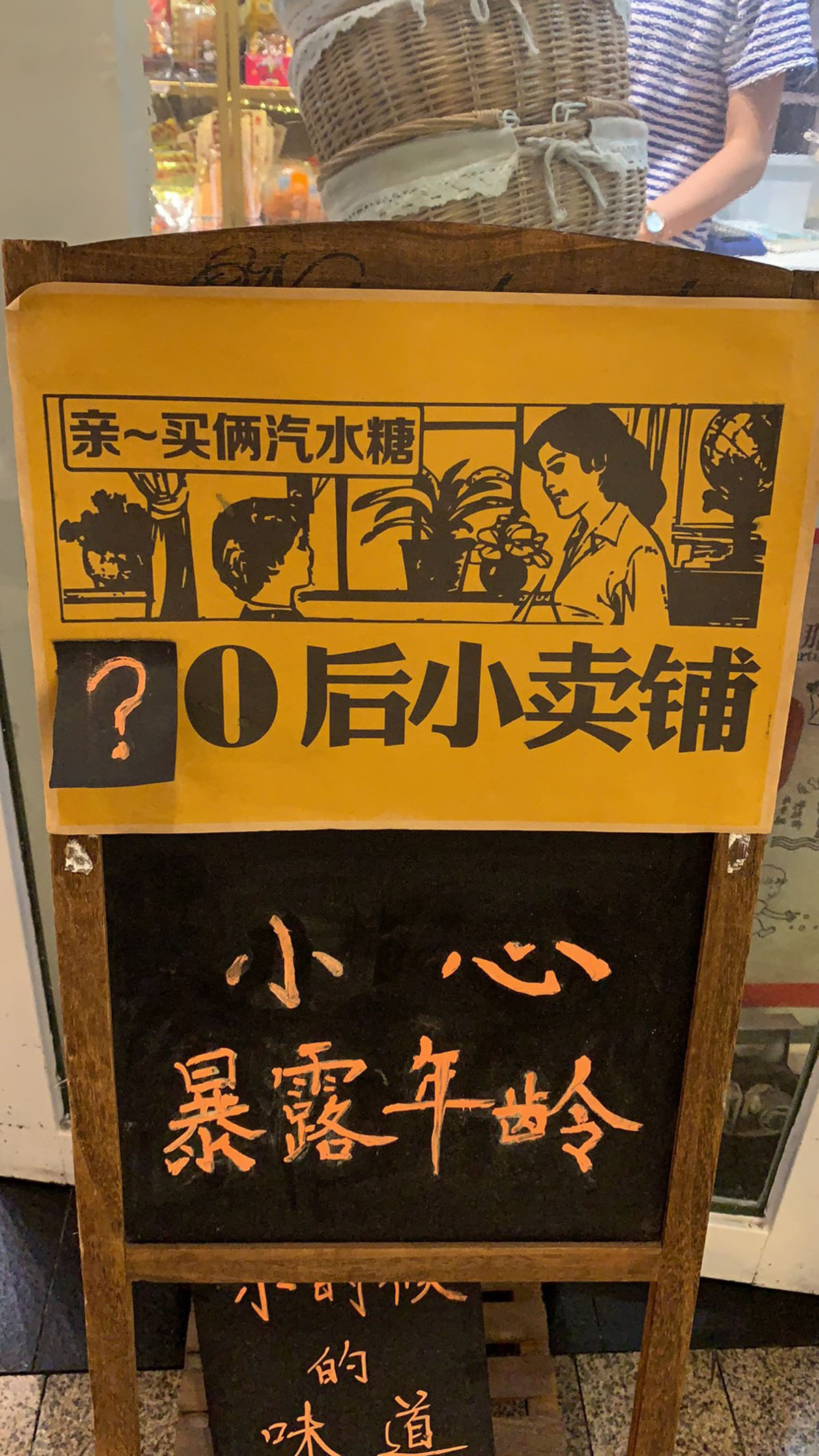 站在店门口,隔着玻璃就能看到的“小时候江湾小学”校牌、“好好学习、天天向上”的“友情提示”,仿佛打开了一扇扇穿越时空的“任意门”。踏进店内,转动发条就能蹦跶一阵的铁皮青蛙、各类款式型号的轿车飞机模型、色彩缤纷的西瓜造型泡泡糖,还有巧克力酱混着饼干豆的星球杯,接连闯入眼帘。