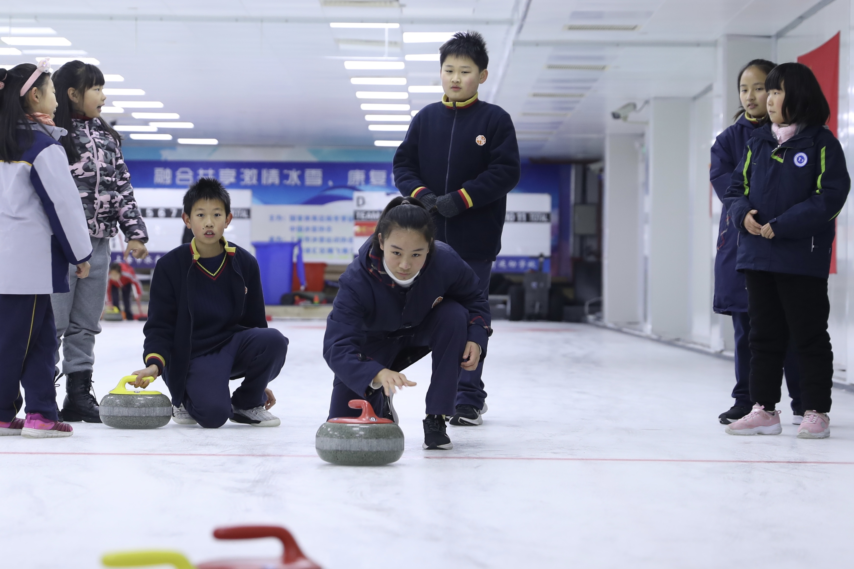 “快乐拉满,成就感拉满!”华育中学初一学生俞艺涵有过“上冰”经历,但体验冰壶项目却是头一回。在徐汇区青少年体育运动学校,经教练指导,她和同学们像模像样地在冰面上滑行、竞技,感受冰雪运动带来的快乐。