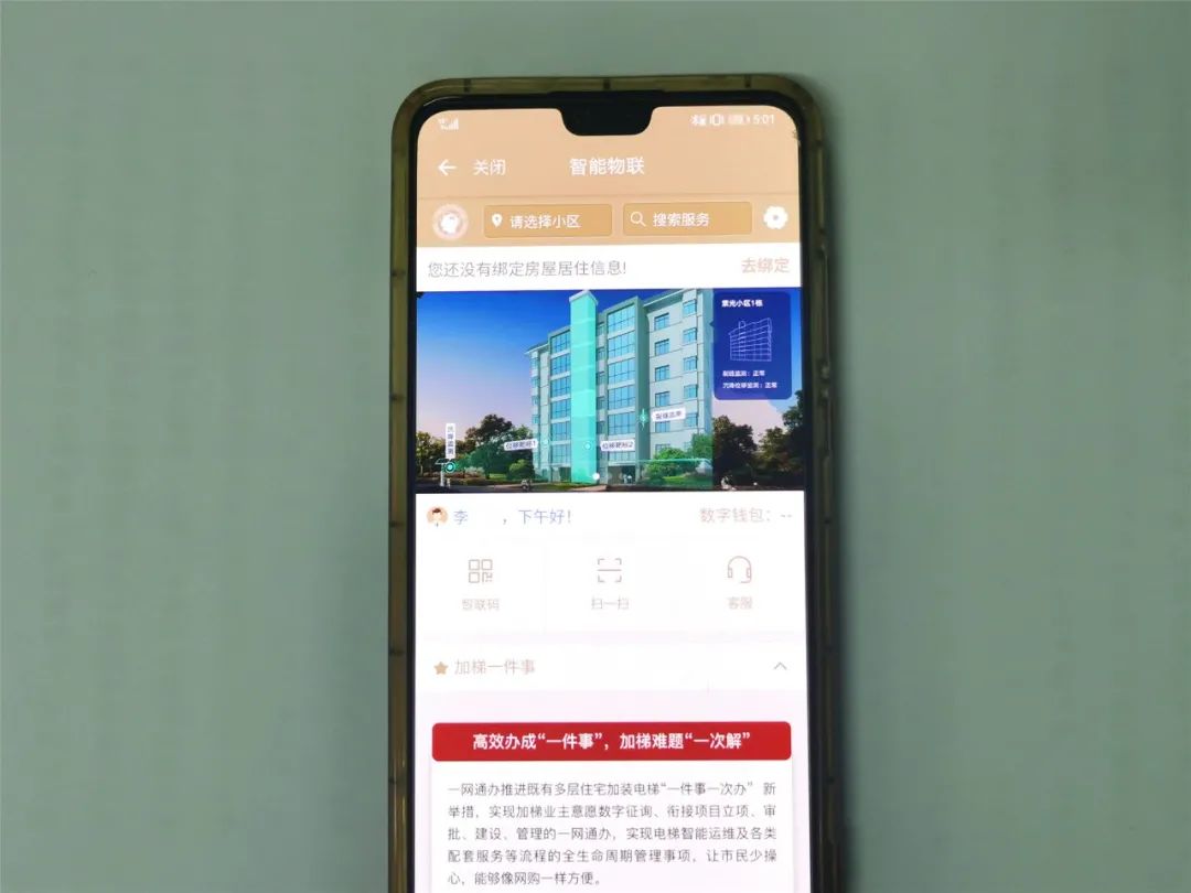 目前,北新泾居民可抢先体验该“加梯一件事”数字系统:进入随申办APP或网页端,搜索“智能物联”进入对应版块,绑定房屋居住信息后即可使用。