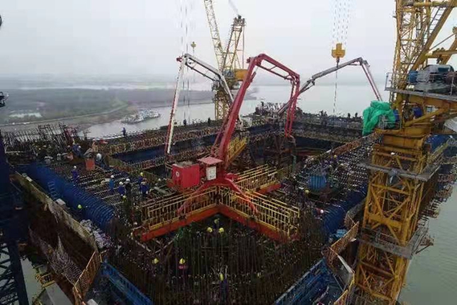 3月19日22时,经过近46小时的连续浇筑,中铁大桥局承建的世界在建最大跨度公铁两用斜拉桥——常泰长江大桥6号主塔下横梁首个“L”型区域浇筑完成,标志着大桥主塔下横梁浇筑施工全面展开。