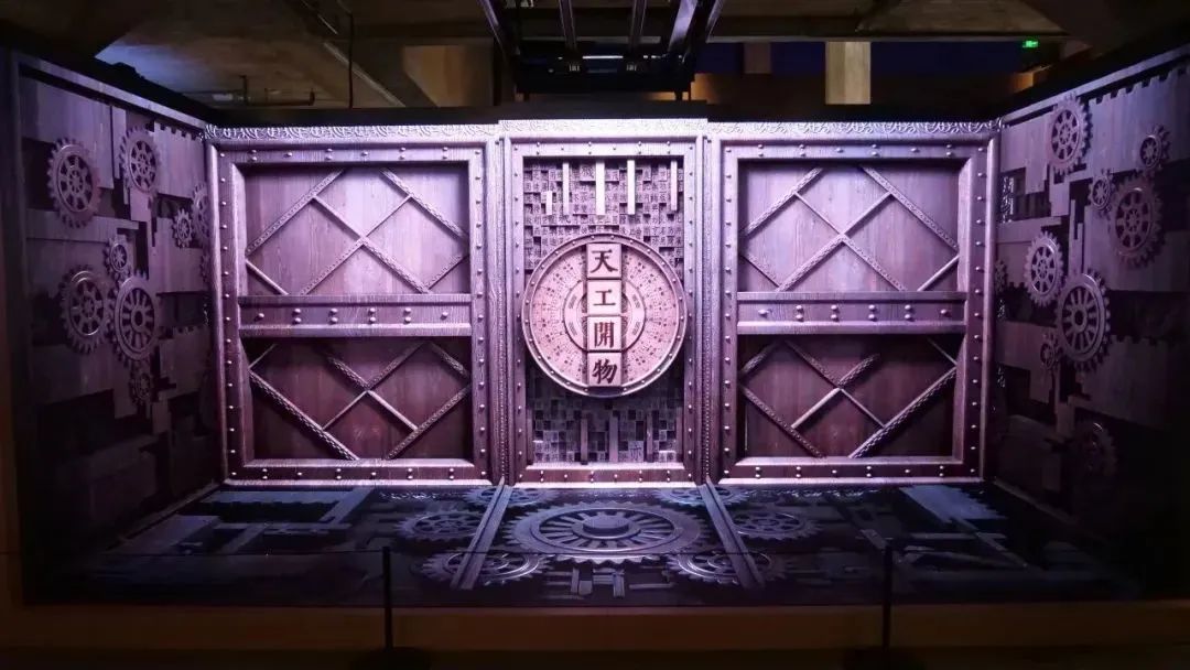 第三展区的开场秀是一个3D互动装置“天工开物”——由多面LED屏幕搭建而成的270°三维立体大屏,打造出一个沉浸式互动观影空间。用手一按,《天工开物》的代表性章节动态呈现在参观者面前。这本书是世界上第一部关于农业和手工业生产的综合性著作,是中国古代一部综合性的科学技术著作、更是中国科技史料中保留最丰富的一部,被欧洲学者称为“中国17世纪的工艺百科全书”,由明朝科学家宋应星初刊于1637年,全书分三卷18篇,附有123幅精美生动的插图,清晰描绘了130多项生产技术和工具的名称。