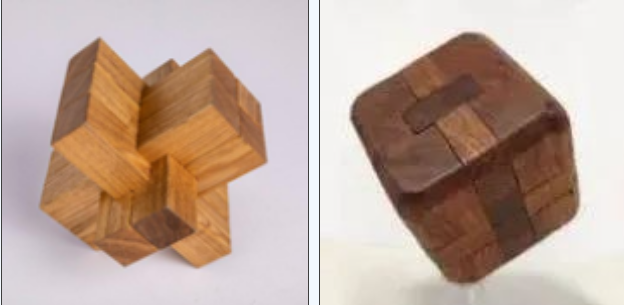 这一区域,另一件凝聚中国古代工匠智慧的就是鲁班锁。鲁班锁,亦称八卦锁、孔明锁,相传由“中国木匠祖师爷”鲁班发明,起源于中国建筑最传统的连接方式——榫卯结构。榫卯结构是中国建筑中的一种奇妙元素,无需钉子、绳索、黏合剂便可稳固梁柱,在河姆渡遗址(迄今六七千年)就已有发现。因其种类繁多,依照不同棒形可以变成多种样式,极富趣味性,曾广泛流传于民间。