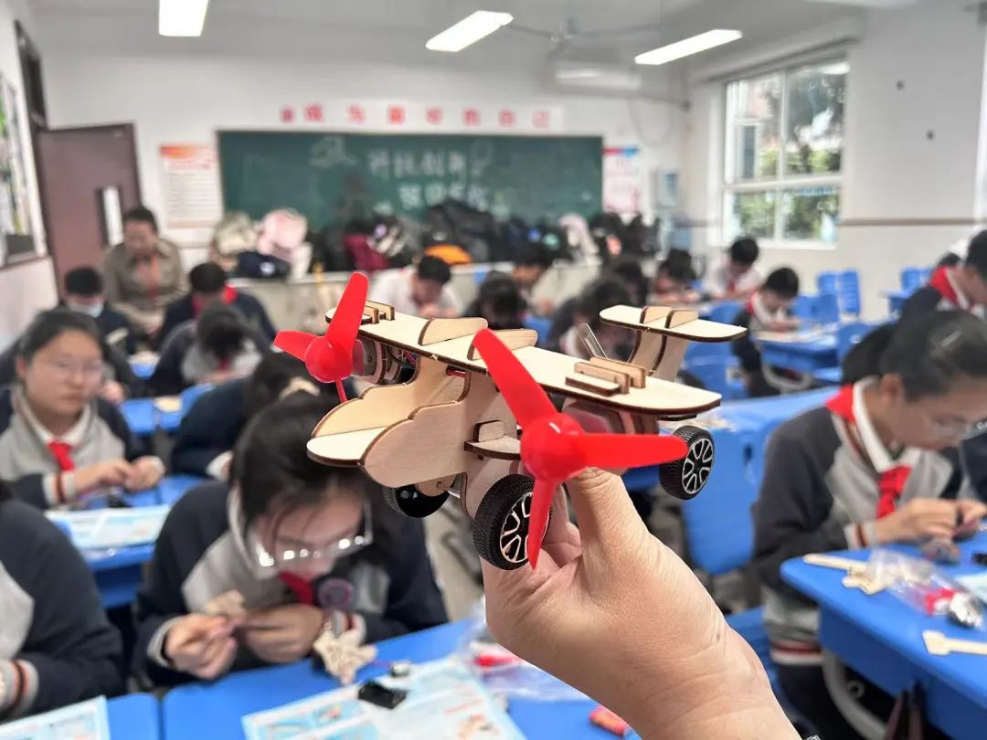 游园会共十三个项目,分为体验类、观摩类、拼搭类、比赛类四大类,同学们握紧手中的飞行体验券,踊跃来到各个不同主题的教室,一头扎进了科技的海洋中遨游,体验了一场充满科技与创新的精彩旅程。