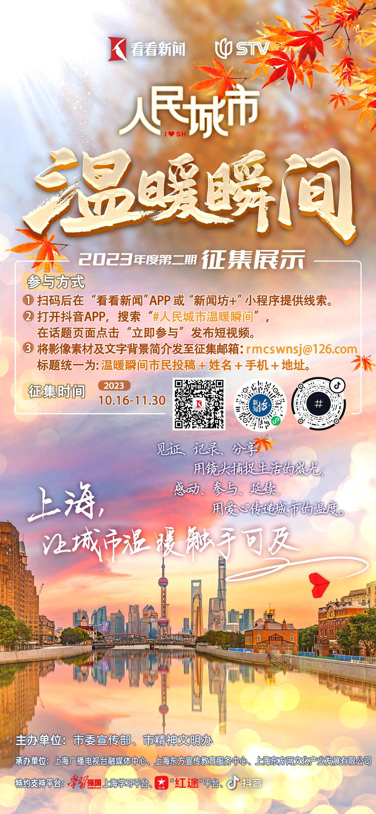秋桂飘香,2023年度第二期“人民城市 温暖瞬间”征集展示活动现已正式启动!我们诚挚邀请你成为“温暖推荐官”,拿起镜头,捕捉生活的微光,记录普通人身上的闪耀瞬间和触动着你心弦的“奇遇”时刻,期待你的接力分享,传递直抵人心的温暖力量!