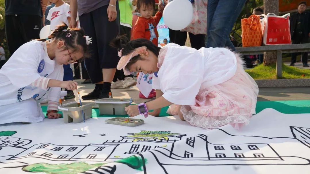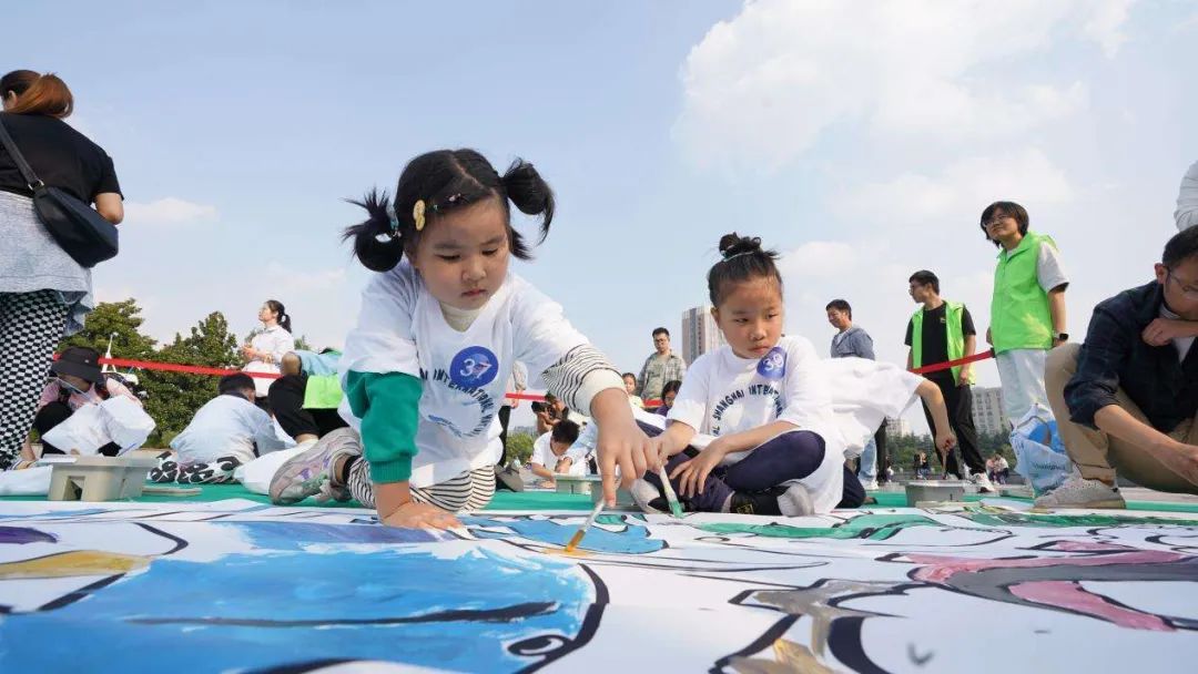 在特别设计的30米生态画卷上,展示了上海市及杨浦区生态地标、长江旗舰物种、全球多样生态。市民通过共绘的方式生动演绎人与自然和谐共生理念。来自杨浦区各街道的孩子们在画卷上尽情涂抹挥洒,或蹲着、或趴着、或坐着,姿态各异,神情专注而认真。不一会儿,画卷被一幅幅风格迥异、充满童真的作品填满,承载着小朋友们对“人与自然”关系的理解和对美丽家园建设的展望。