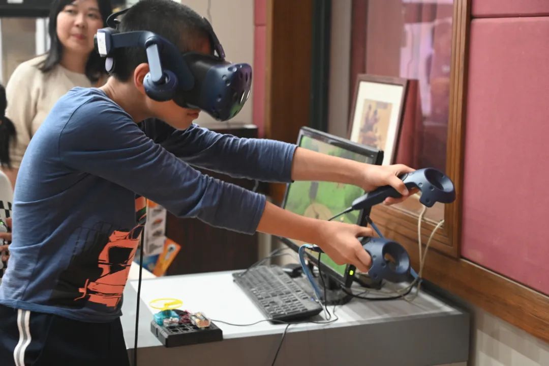 随后,大家来到了上海理工大学国家级装备制造虚拟仿真实验教学中心,这里是首批上海市学生(青少年)科创教育基地。“VR智能”“机械手”“猪笼草”……这些陌生又有趣的词汇,打开了青少年探索科技的大门,也点亮了他们心中的科学梦想。