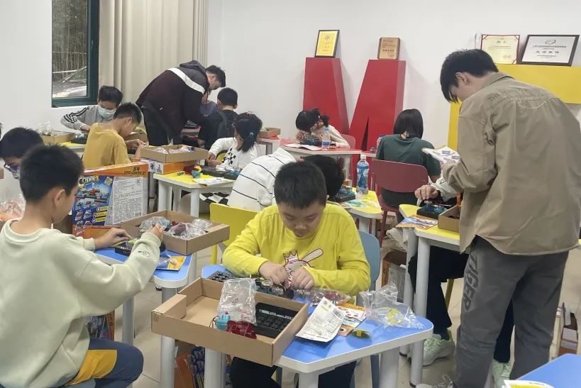 此外,孩子们还走进了“智能工厂”培训室动手体验起来。在志愿者老师们的指导下,完成了迷宫铃铛、飞碟实验和浮动球实验,并了解实验背后的原理。而家长们也在一旁的教室观看机械相关科普影像,咨询机械专业相关内容,在老师的介绍下,了解到如何在现阶段掌握机械编程基础知识、机械专业的就业方向和发展前景等。