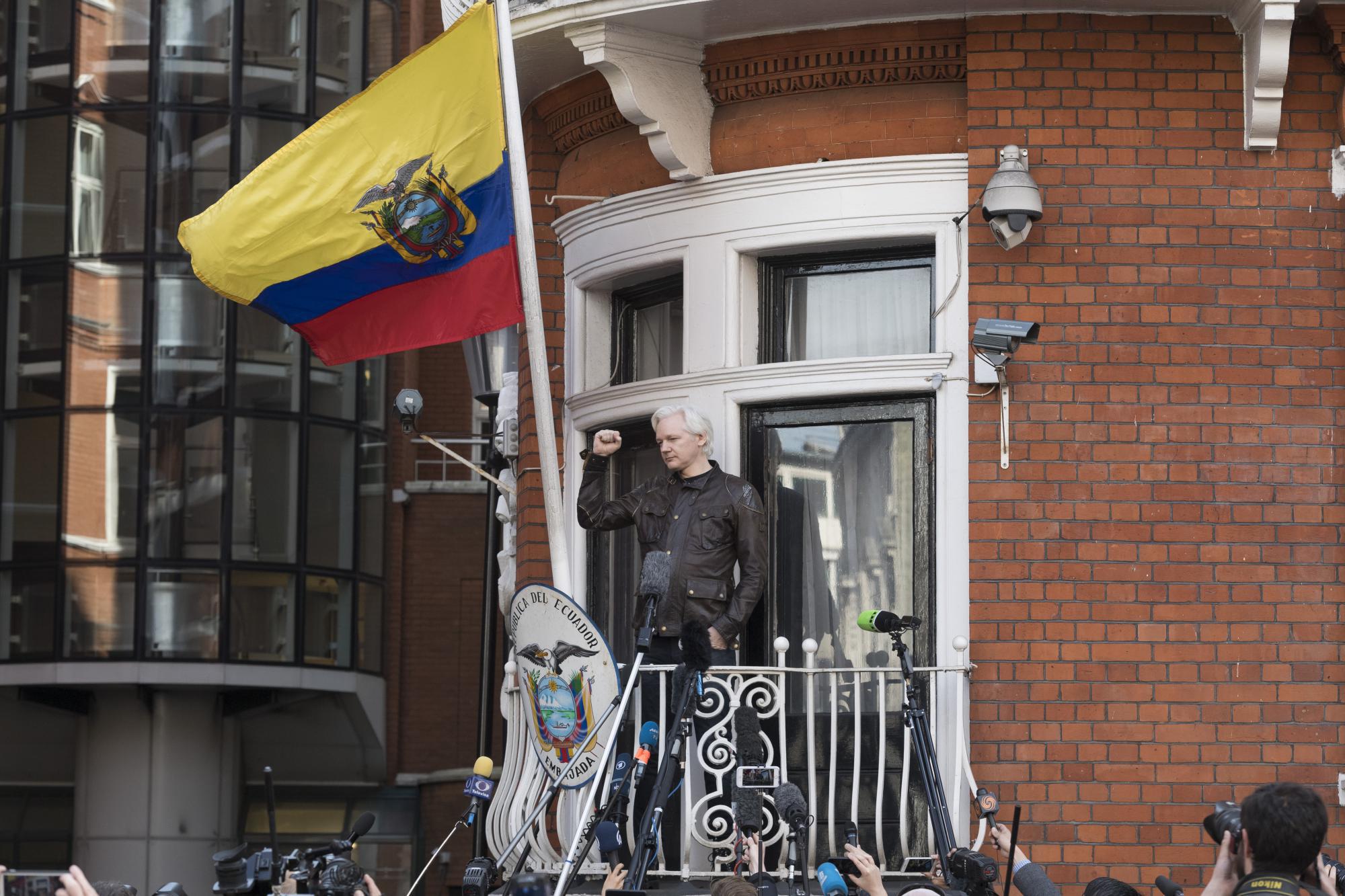阿桑奇在厄瓜多尔驻英国大使馆的阳台上接受媒体采访,但现在他可能将被赶出这个待了六年的避难所。视觉中国