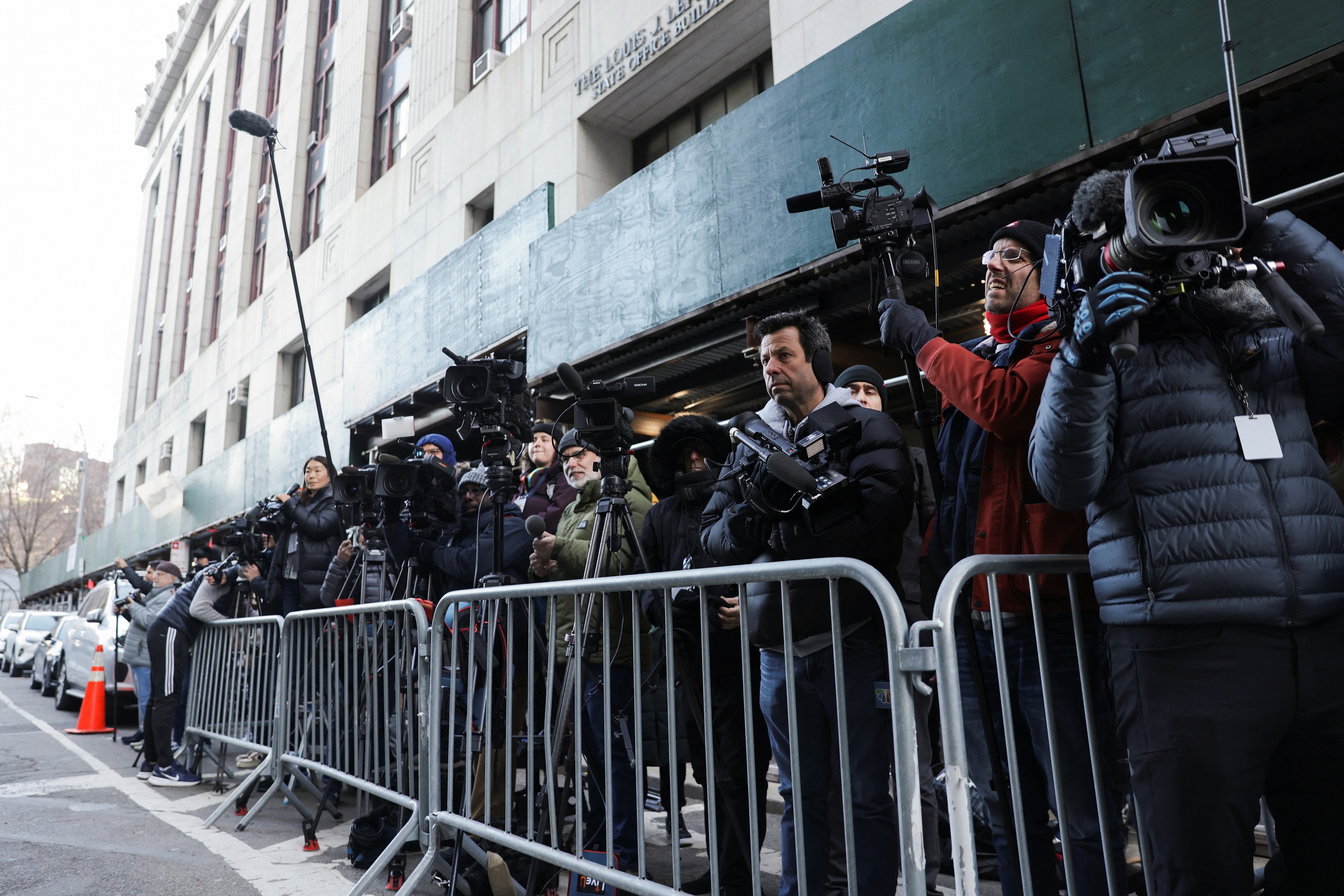 ▲ 记者在美国纽约曼哈顿刑事法院外聚集。