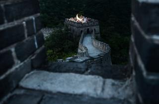 6月19日晚,暮色之中的北京慕田峪长城烽火台上,惊现一个大型的月亮装置,在这里,竟然出现了一家深夜食堂。