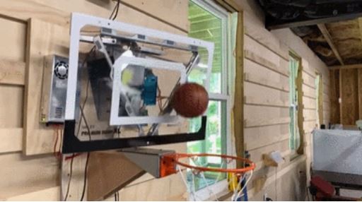 这位名叫Shane Wighton的国外程序员,发明了一块神奇的“百发百中”篮板。不管你怎么投球,只要球碰到篮板,篮板就能让球进入篮筐。