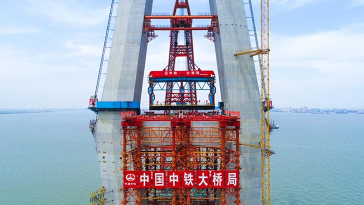 907吨!沪通长江大桥主桥首节钢梁架设到位