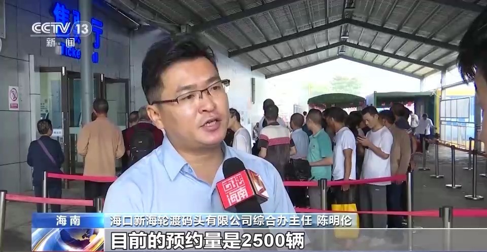 海口新海轮渡码头有限公司综合办 主任 陈明伦:放假第一天(29日)目前的预约量是2500辆,跟往年比都是算持平的。出行的高峰我们预计是在27日、28日以及(10月)5日,现在票务充足。