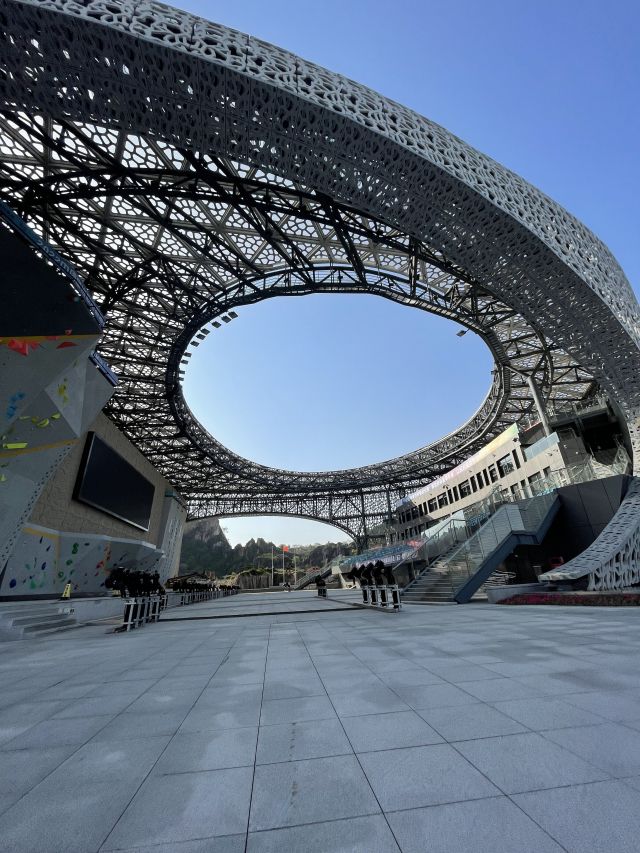陈月芳说,该场馆的诞生是一个绿色的故事。羊山攀岩中心所在地原本是一个古老的采石场,1500多年前,越王勾践就采羊山石筑绍兴城,经过千百年的开采,形成了千岩万壑的石景奇观,2000年央视播出的《西游记》续集就在此取景。乘着亚运会的东风,废弃的采石场华丽转身为国际赛场,建设中,保留了石景奇观,对周边环境进行了提升。同时,场馆还是一个半开放的设计,最大可能开启天空,通过框景的手法引入背后的羊山石城,天然岩壁与人工岩壁相得益彰,自然景观与现代建筑完美融合。“举行颁奖仪式时,国旗冉冉升起,无论是运动员还是观众,不仅能感受到比赛的激情,还能看到背后起伏的青山,全世界看直播的观众也能够欣赏美丽的中国园林风景。”