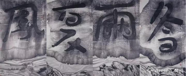 简介:《汇流·通达》是在传统汉字和书法基础上创作的当代水墨作品。作者解构了传统汉字规则上的音形义,建立了新的书写规则。通过合并,把两个字变成一个字,该字不在日常文化的字典中,但保留原义。谷氏简词往往和水墨绘画结为一体,以淡远的、具有强烈传统审美的水墨画为背景。书写方法上,也与传统书法和笔法不同,使用更接近于设计的方法来构建文字的造型。《汇流·通达》取意开放的上海,既体现上海的重要地理特性,也传达了进博会会议精神与上海海纳百川、追求卓越的城市精神。