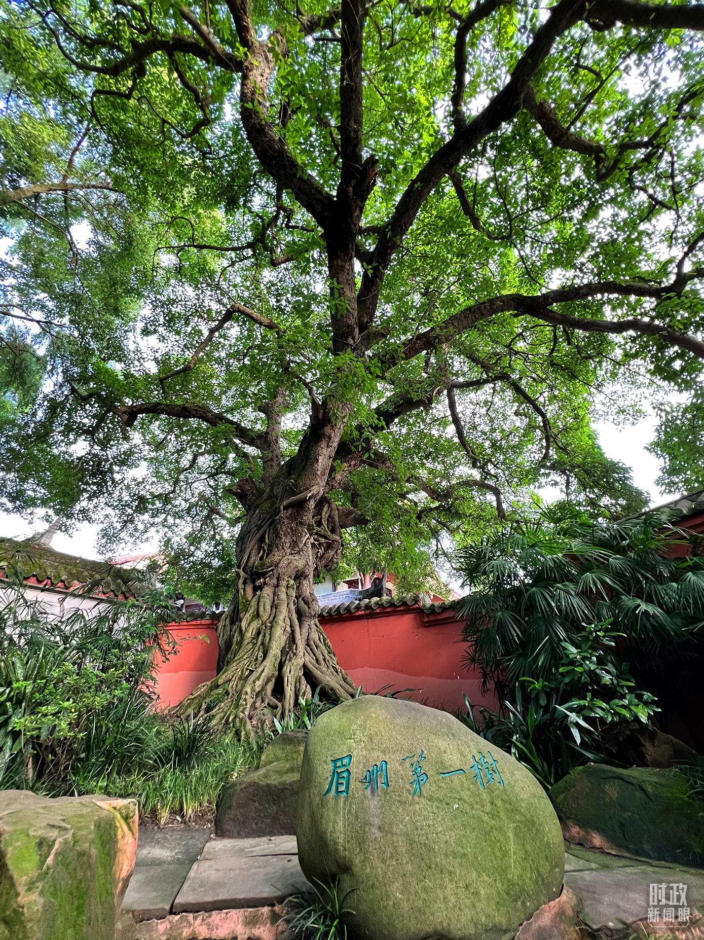△三苏祠内被称为“眉州第一树”的千年黄葛树。(总台央视记者杨新禹拍摄)