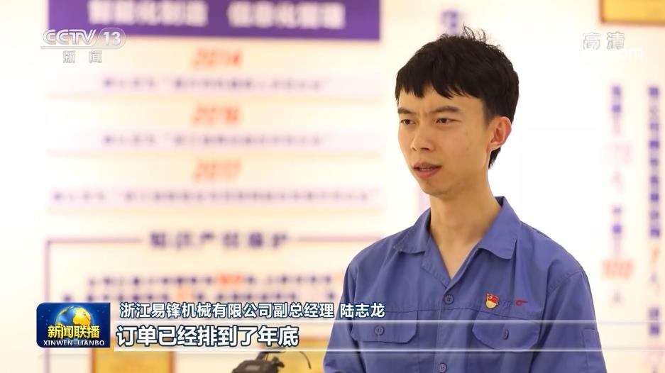 浙江易锋机械有限公司副总经理 陆志龙:订单已经排到了年底,我们公司将维持年初制定的业绩增长20%目标不变。