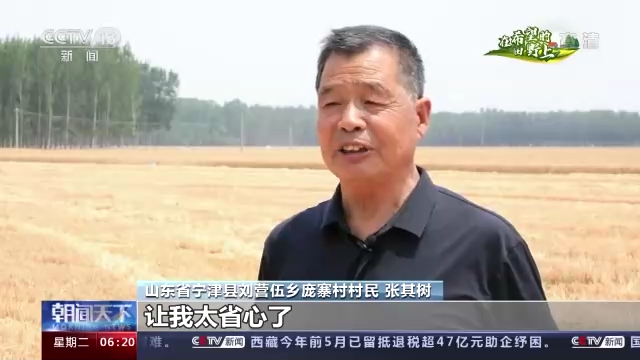 山东省宁津县刘营伍乡庞寨村村民 张其树:乡里提前和我联系了,让孩子们安心在外务工,收麦子种玉米他们全包了,让我太省心了。