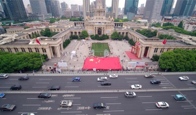 在“上海之根”展开一幅巨型国旗!广富林的这场快闪串起历史与未来