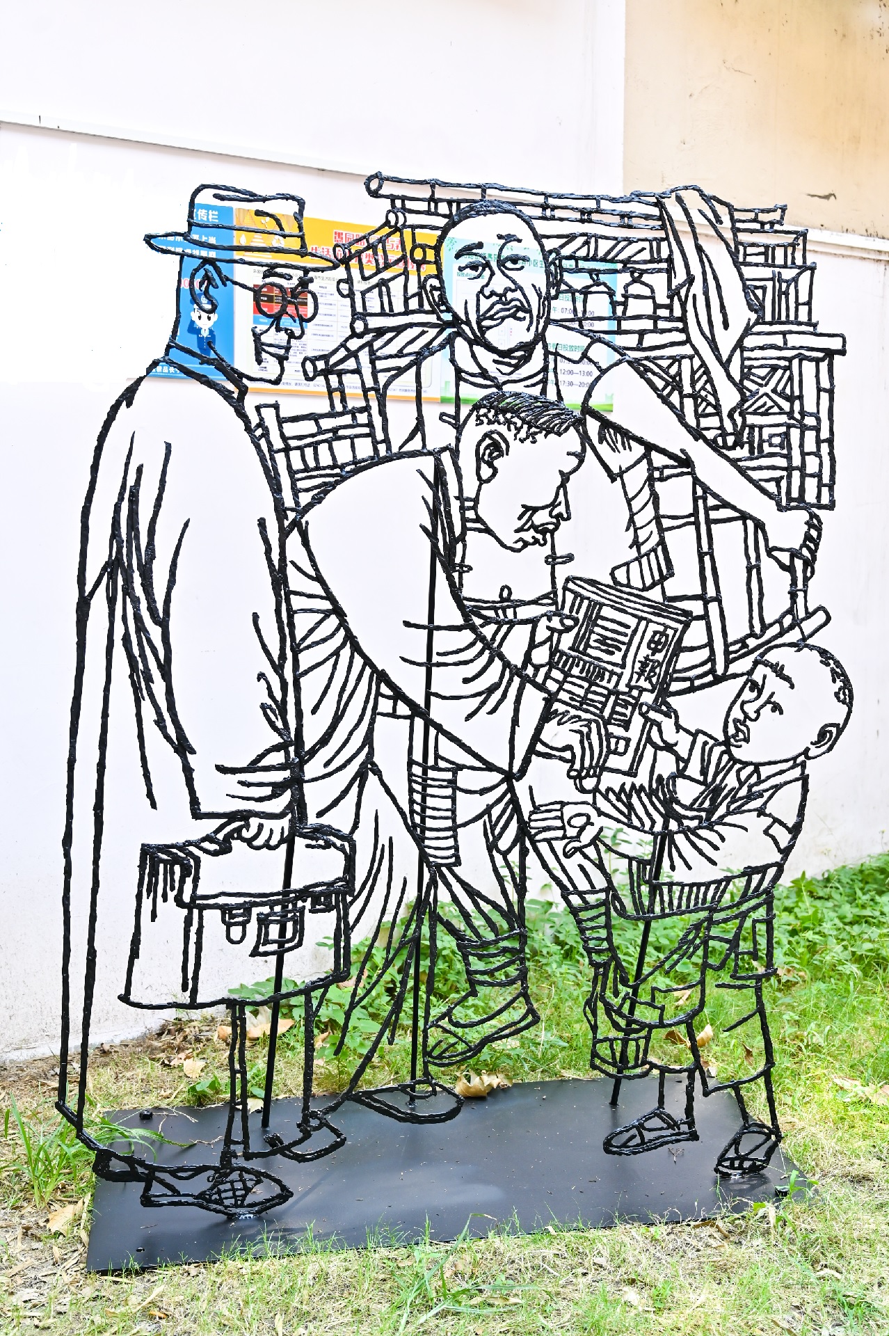 作品《回眸》以百年前愚园路上的生活场景、社会名人、市井印象为蓝本,先由画家叶雄进行手绘创作,再由芜湖铁画省级非遗传承人、曾参与制作人民大会堂铁画的老艺人张德才指导陈龙、杨勇锻制,最终呈现为愚园路1315弄“愚园人家”门前的城市空间公共艺术装置。