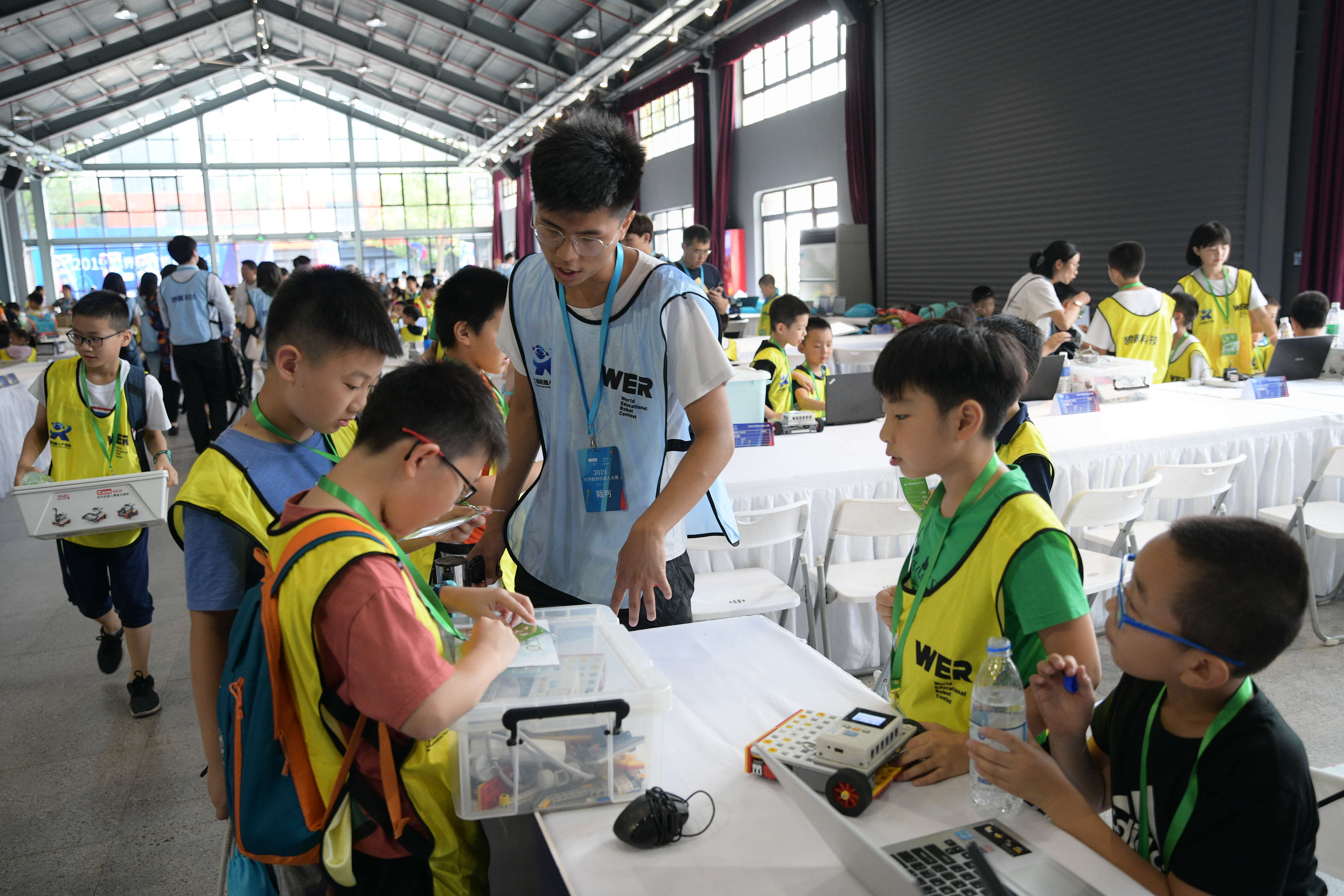 今天,来自全国30个地区438个学校的近千名名中小学生,参加了在宝山区智慧湾科创园举办的WER2019世界教育机器人大赛上海地区公开赛。
