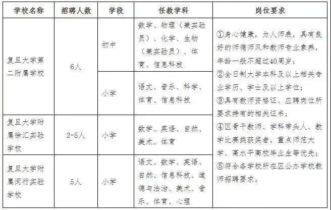 在复旦人事处今年3月发布的公开招聘表格中,我们看到首批招聘小学教师为5名,包括语数英自然信息等学科。