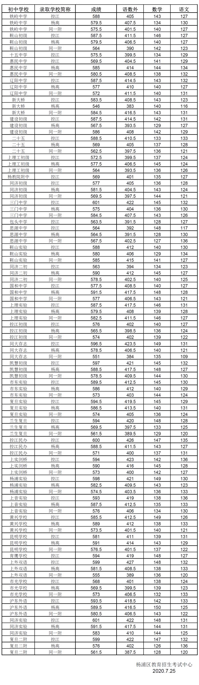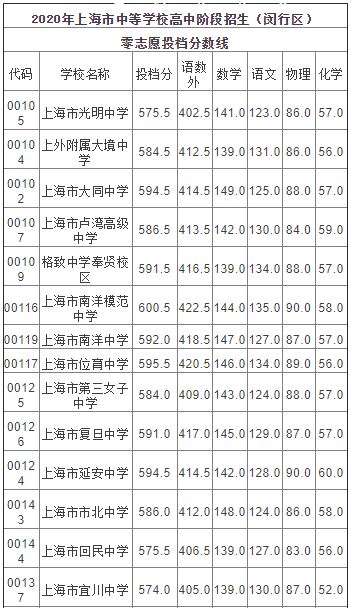 今天,上海16区陆续公布中招零志愿、名额分配志愿录取分数线。