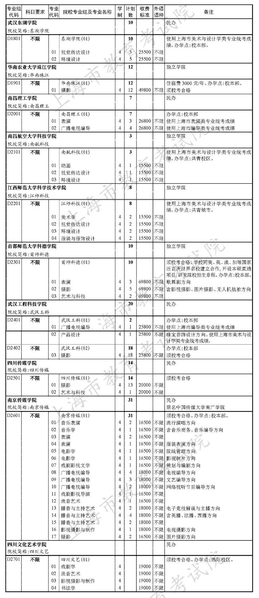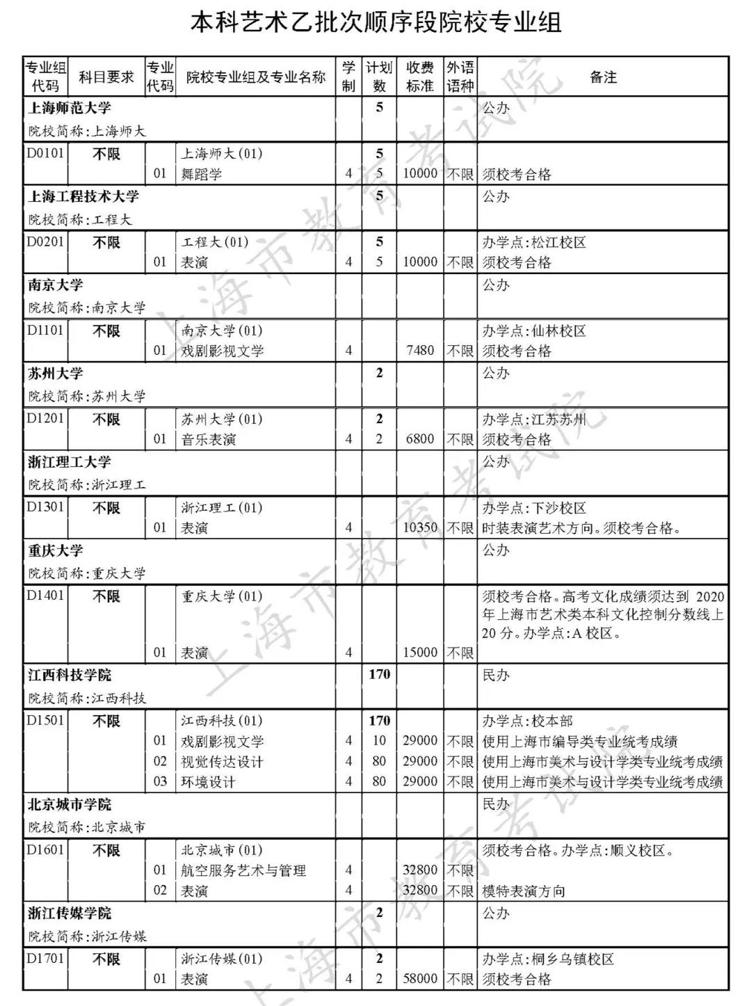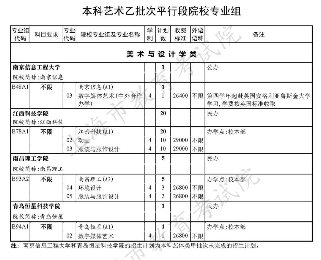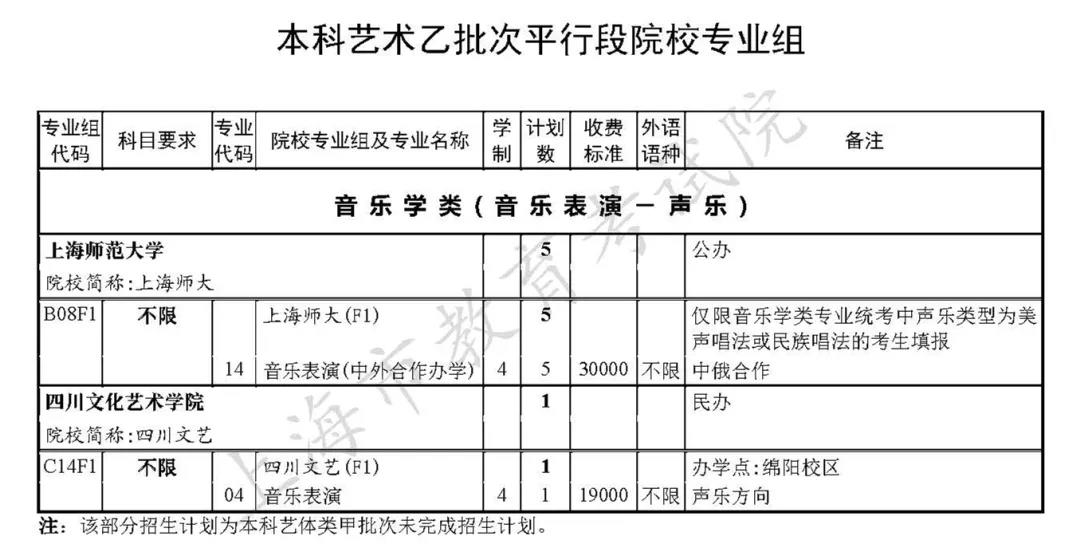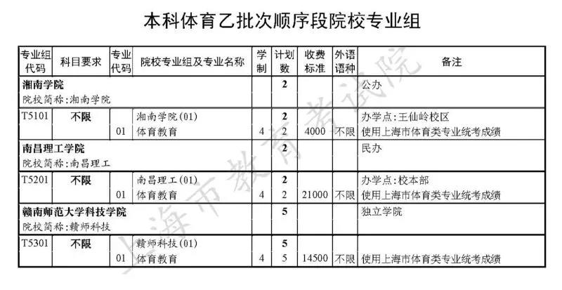 市教育考试院已公布了“2020年上海市普通高校招生本科艺体类乙批次(含顺序段和平行段)招生专业及计划”(见下图↓)。