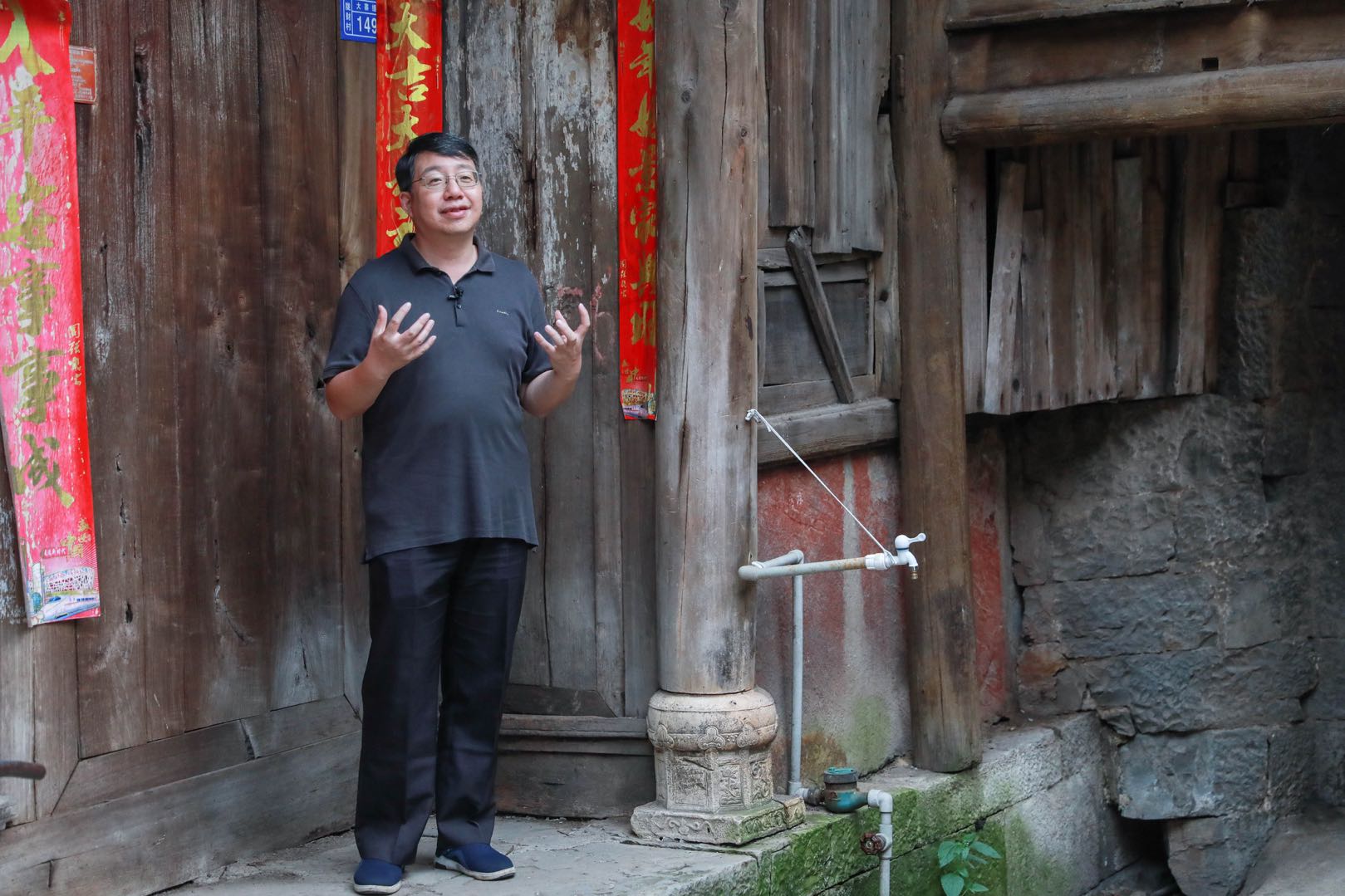 图为城市与区域科学学院孔翔教授在布依族陇财村录课。